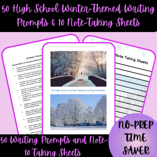 Each of these fifty prompts invites students to explore the deeper themes and imagery of winter through various lenses—analytical, argumentative, reflective, and creative. From analyzing the symbolism of snow in classic literature to writing a first-person narrative about solitude, these 50 High School ELA Winter-Themed Writing Prompts are designed to inspire thoughtful, text-based, and emotionally resonant writing. The included note-taking sheets provide structured space for brainstorming, gathering evidence, and planning essays. This 50 High School ELA Winter-Themed Writing Prompts resource meets students/homeschoolers where they are while nudging them toward higher-level thinking and composition.