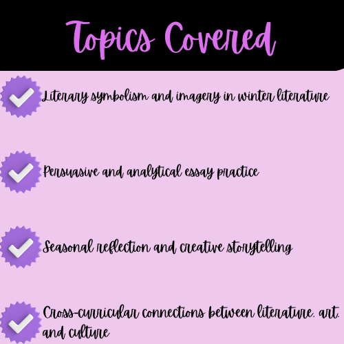 Winter is a natural backdrop for introspection, and this set helps students/homeschoolers channel that reflective energy into writing that feels both personal and academic. Whether they are examining literary metaphors or crafting original stories, teens learn to express their ideas clearly and confidently. The balance between creative freedom and academic challenge keeps students/homeschools engaged while sharpening essential writing skills. It is the perfect way to blend seasonal relevance with college-prep ELA rigor.