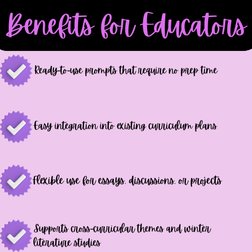 Teachers and homeschool parents will appreciate how easy it is to use these prompts in a variety of settings. They can be assigned as warm-ups, essay starters, creative projects, or even discussion prompts for literature studies. With such a wide range of writing styles represented—from rhetorical analysis to poetry—this collection fits seamlessly into nearly any curriculum. The prompts also align beautifully with both classical and modern literature studies, adding depth to winter-themed reading units.