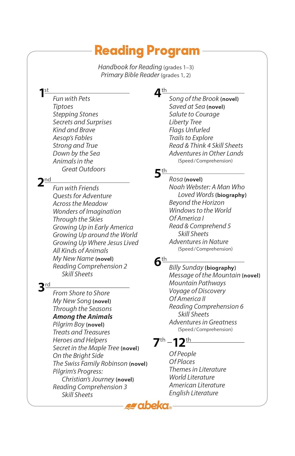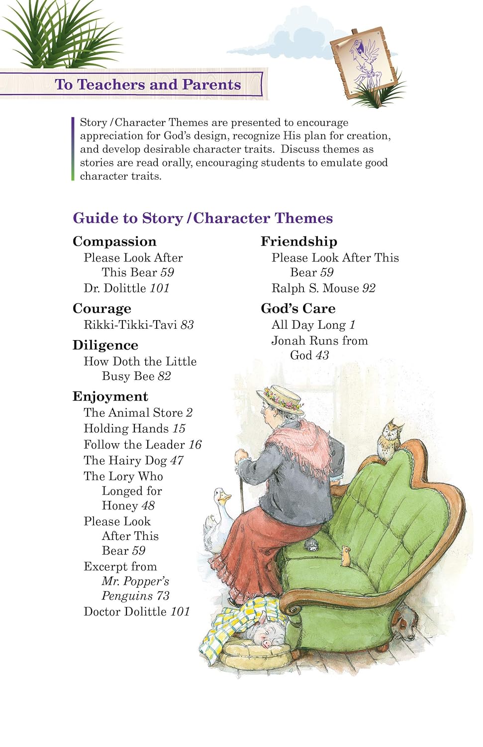 Educate and entertain your 3rd grader with the 12 fun stories, 8 poems, and 1 play found in Abeka’s Among the Animals. The fun selections include “Please Look After This Bear” from A Bear Called Paddington by Michael Bond, “Black Beauty” by Anna Sewell, an Excerpt from Mr. Poppers Penguins by Richard and Florence Atwater, “Doctor Dolittle” by Hugh Lofting, and many more! Easily find a list of challenging words in the “Word to Watch For” section at the beginning of each piece and evaluate your child’s understanding through the questions found in the “Think About it” and “What Do You Think?” sections at the end of stories. Your child will learn to be able to decode written language easily, read with comprehension, and demonstrate an ability to read with appropriate oral expression. Develop your child’s thinking skills and help them apply lessons learned to real-life situations through the fun selections from Among the Animals! Grade 3.