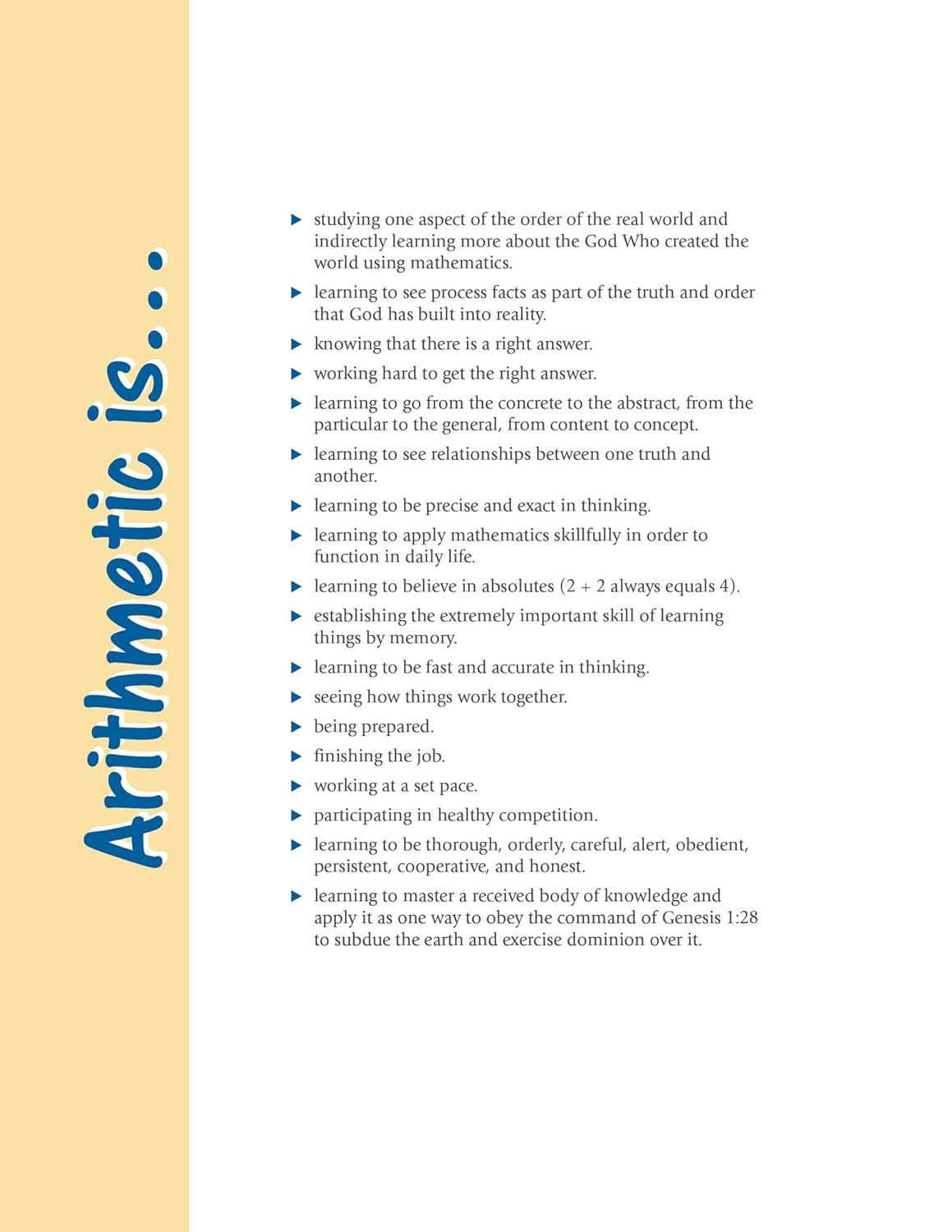 Usher your child into the world of percentages and pre-algebra with Arithmetic 6 from Abeka. This full-color, traditional work text will review decimals, fractions, measures, and more while enhancing your child’s understanding of basic geometry, percentages, graphs, algebra, and practical mathematics. Broaden your child’s understanding of problem-solving by analyzing and checking his answers to ensure accuracy. Supplemental problems, homework assignments, and a handbook for terms and definitions in the back of the book provide ample review and added implementation.