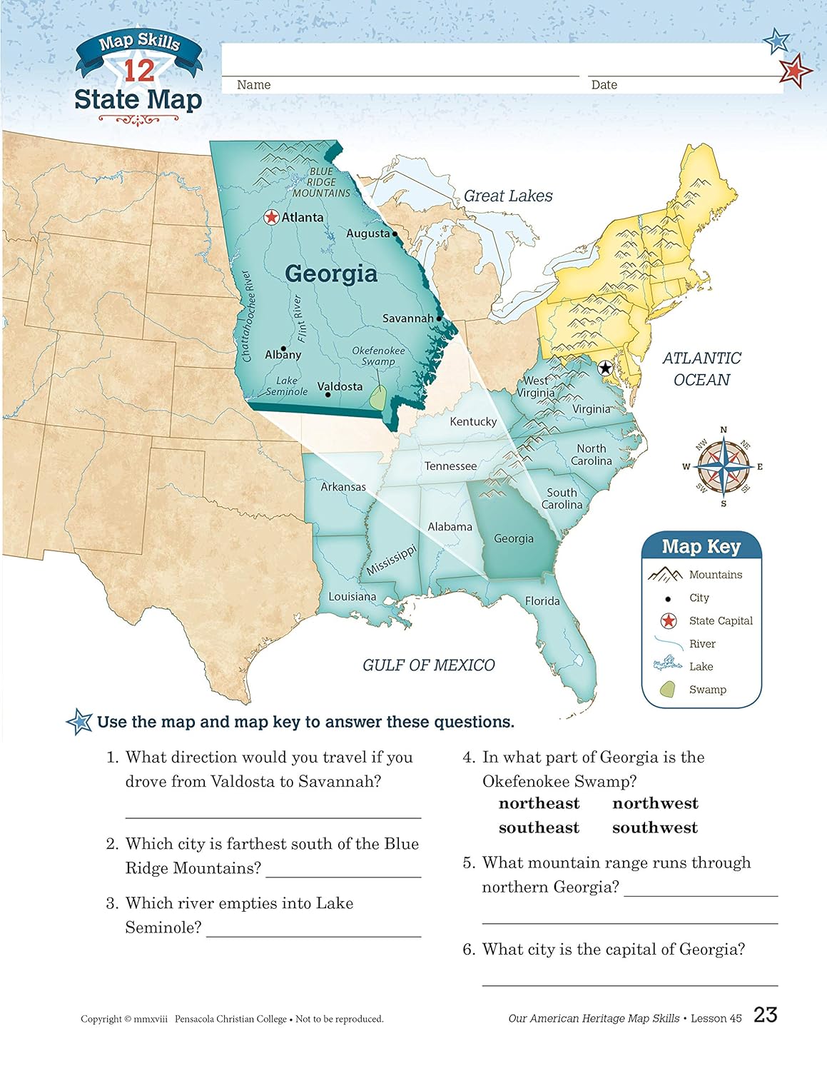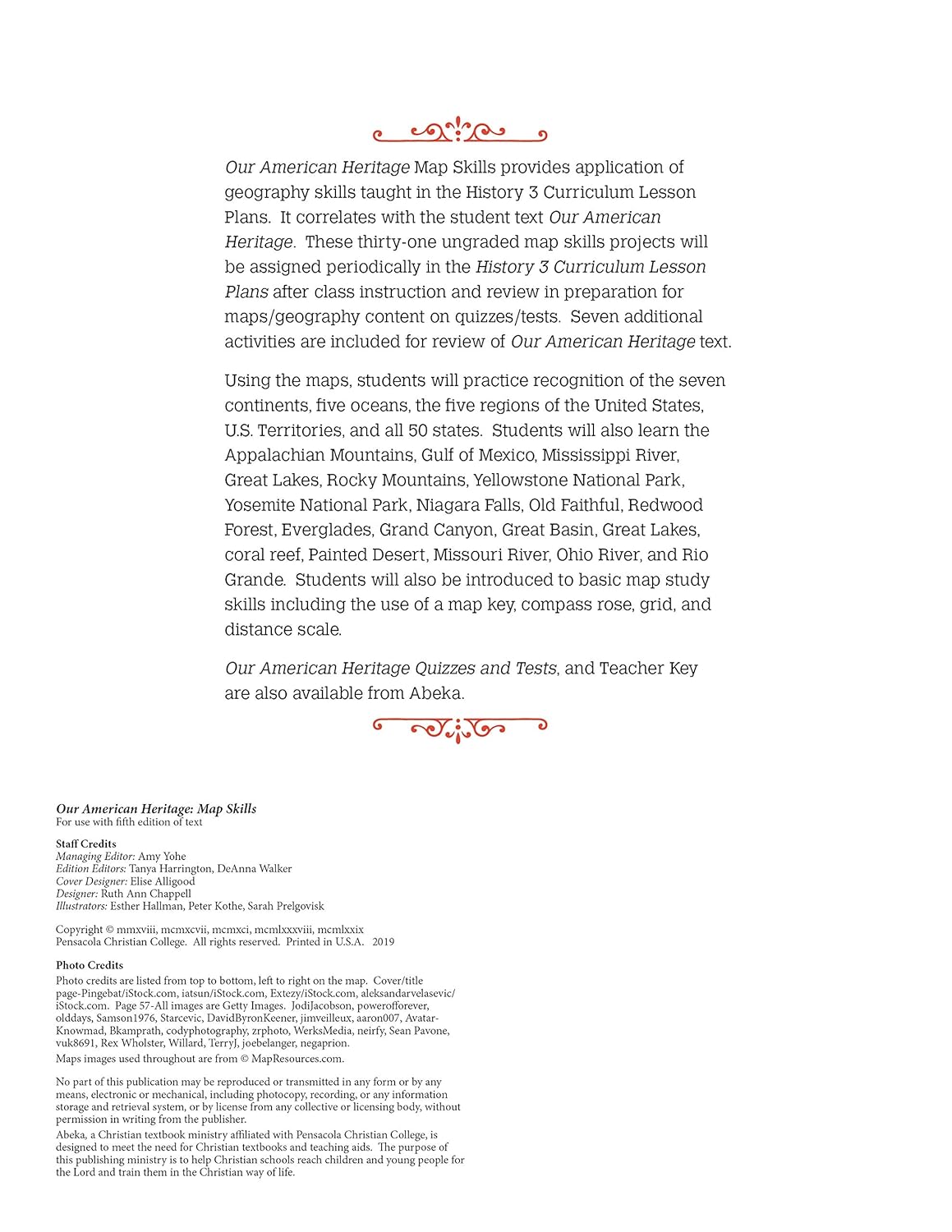 Map Skills Book - Abeka 3rd Grade 3 United States, America Geography Studies Student Activity Work Book
