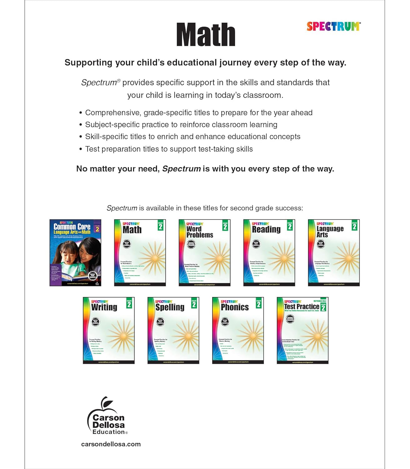 - Testing progress along the way. Pretests, posttests, a mid-test, final test, and an answer key are included in the Spectrum math grade 2 workbook to help track your child’s progress along the way before moving on to new and exciting math lessons.