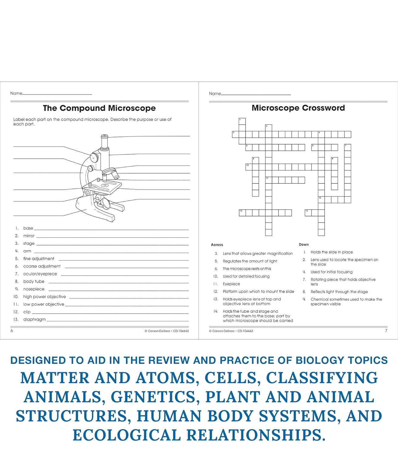 INCLUDES: The worksheets provided cover every area of biology, including matter and atoms, cells, classifying animals, genetics, plant and animal structures, human body systems, and ecological relationships. The book also includes engaging, grade-appropriate activities and clear thumbnail answer keys. This series is aligned to current science standards.